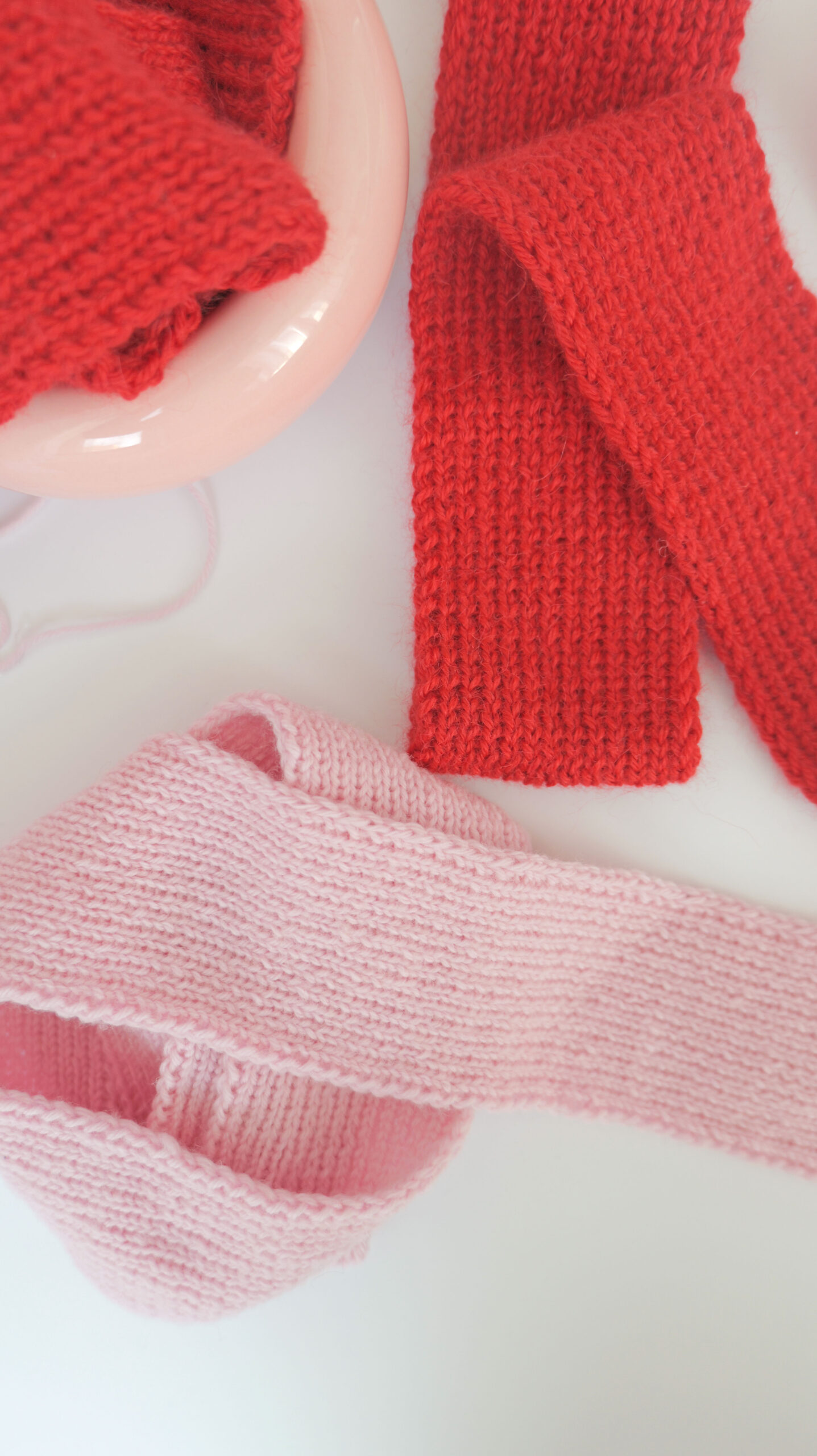 • Material Rot: 90% Alpaka 10%Wolle , Rosa: Schurwolle